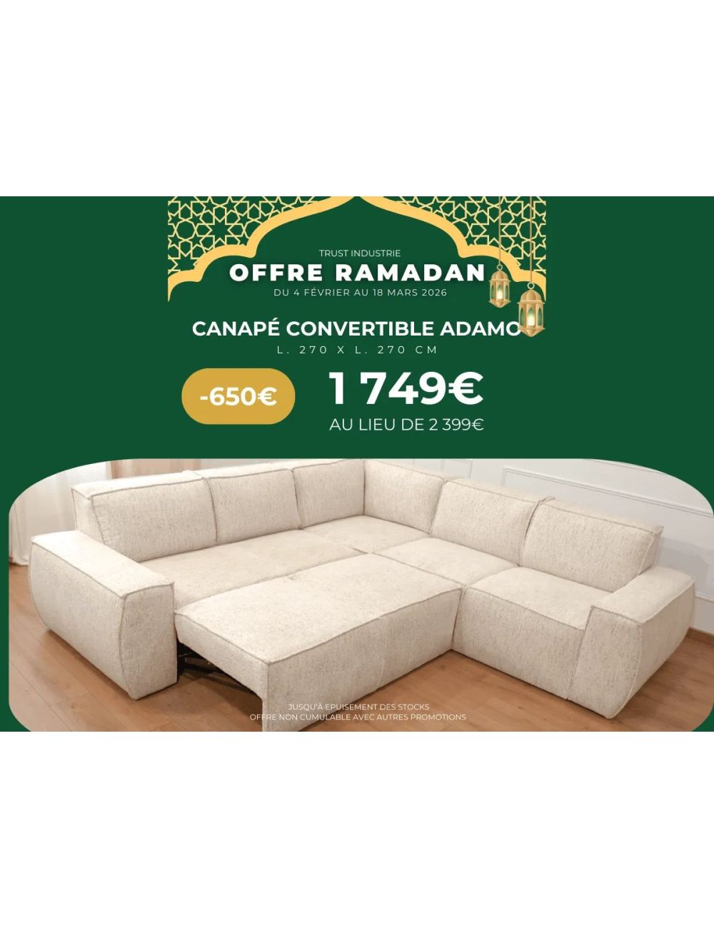 Ajoutez une touche d'élégance et de confort à votre intérieur avec le canapé d'angle Adamo. Ce modèle spacieux, en tissu de couleur beige, s'intègre parfaitement dans tous les styles de décoration. Conçu pour optimiser votre espace et offrir un confort exceptionnel, il est idéal pour accueillir votre famille et vos invités.