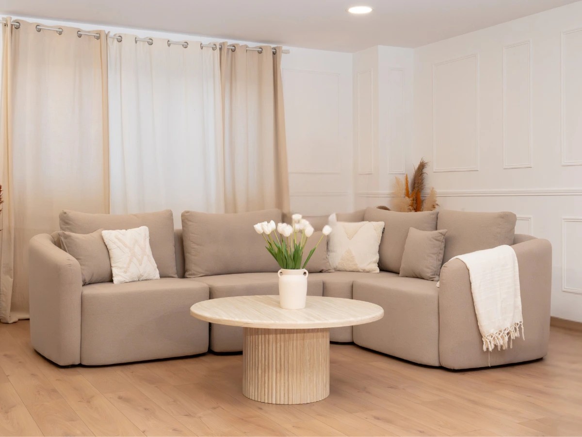 Apportez une touche d’élégance moderne à votre salon avec le canapé d'angle ARONA. Conçu pour sublimer tous les styles d'intérieur, ce modèle allie confort et design avec subtilité. Son allure contemporaine s’intègre parfaitement dans les espaces de vie, qu’ils soient spacieux ou plus intimistes.