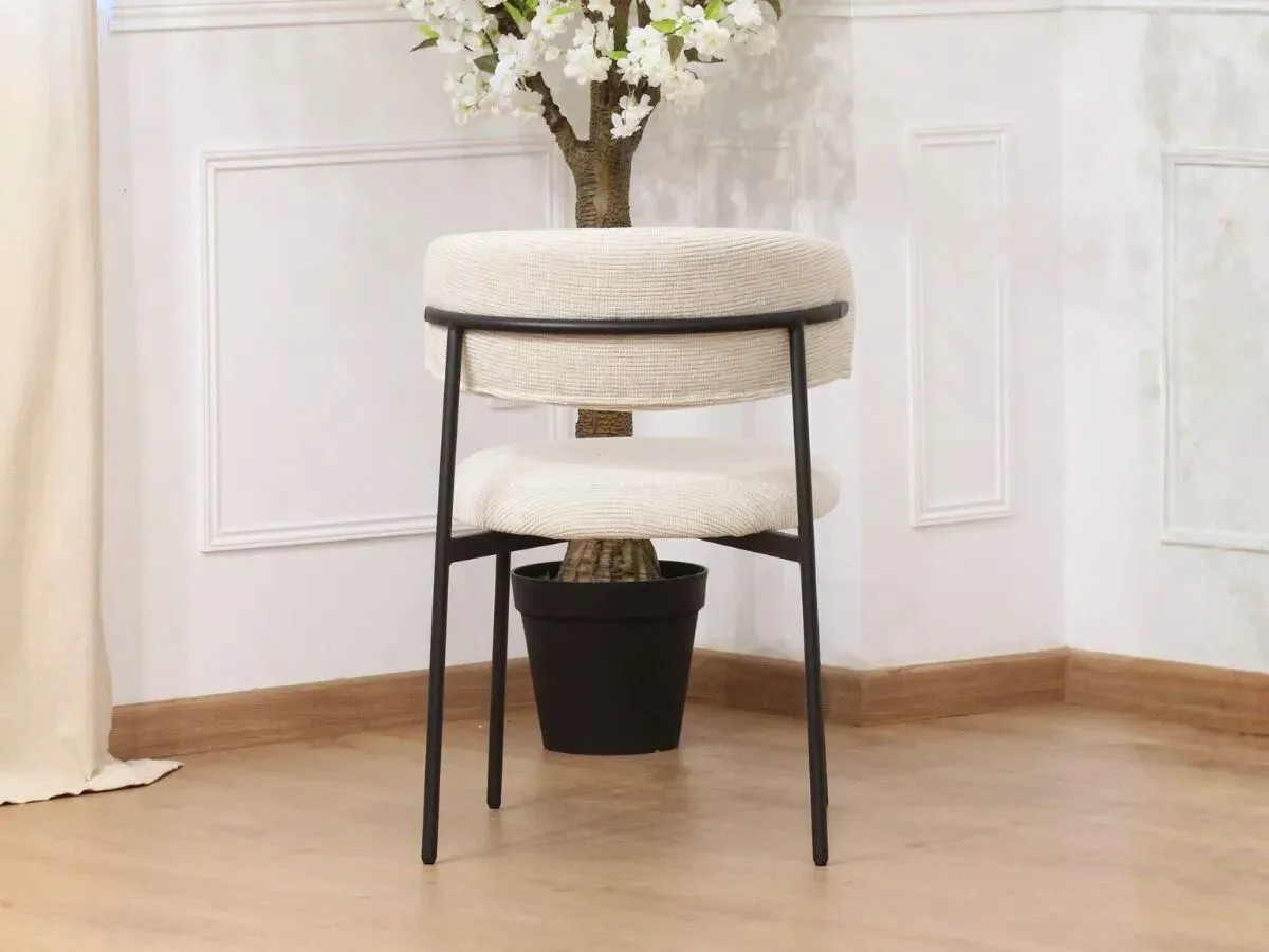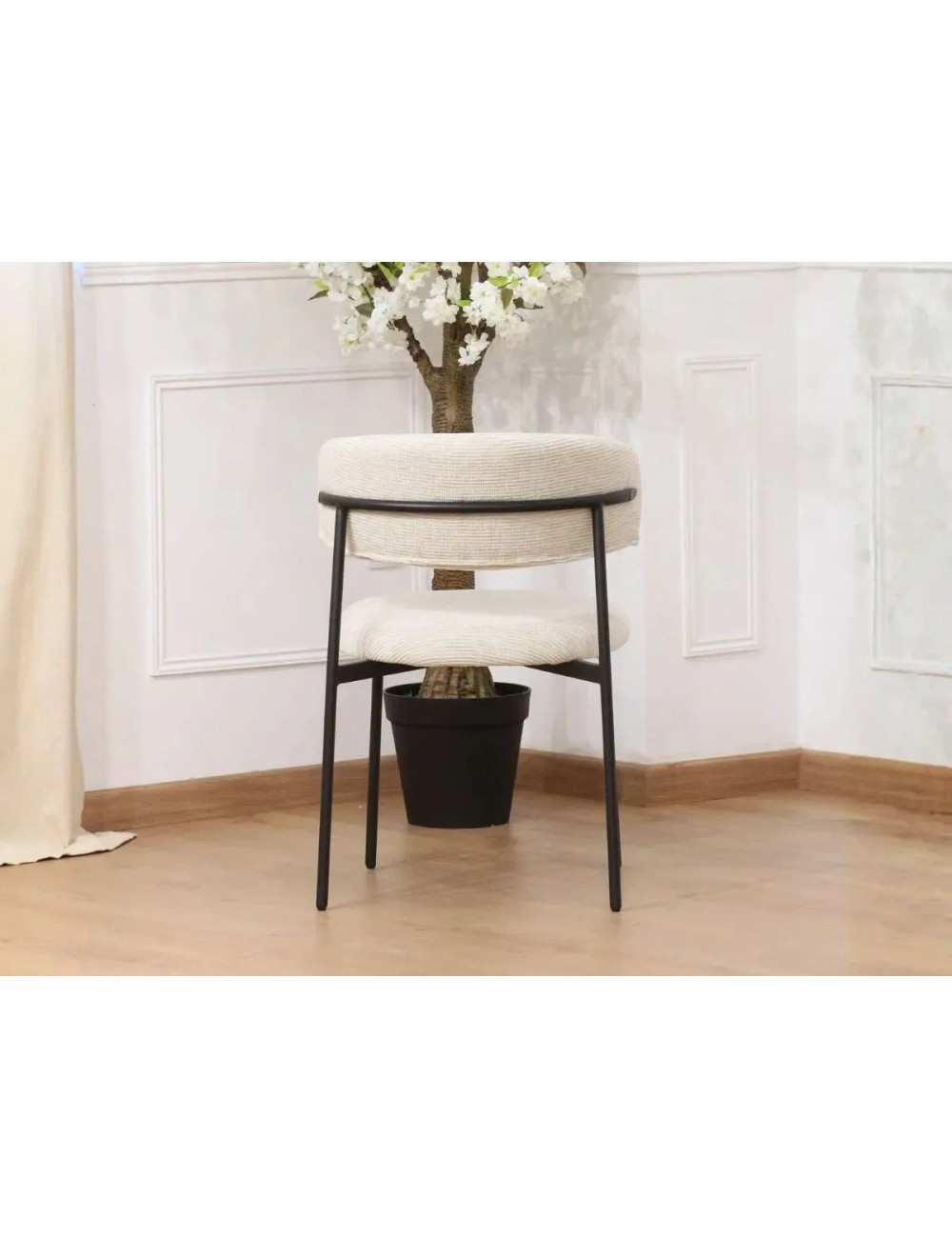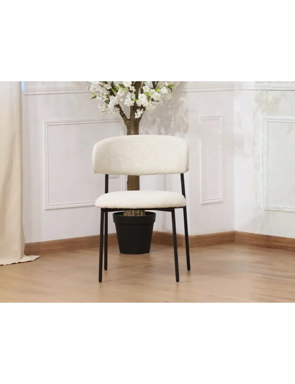 Offrez-vous un vrai moment de confort avec une chaise aussi esthétique que fonctionnelle, conçue dans un tissu bouclé côtelé résolument tendance.