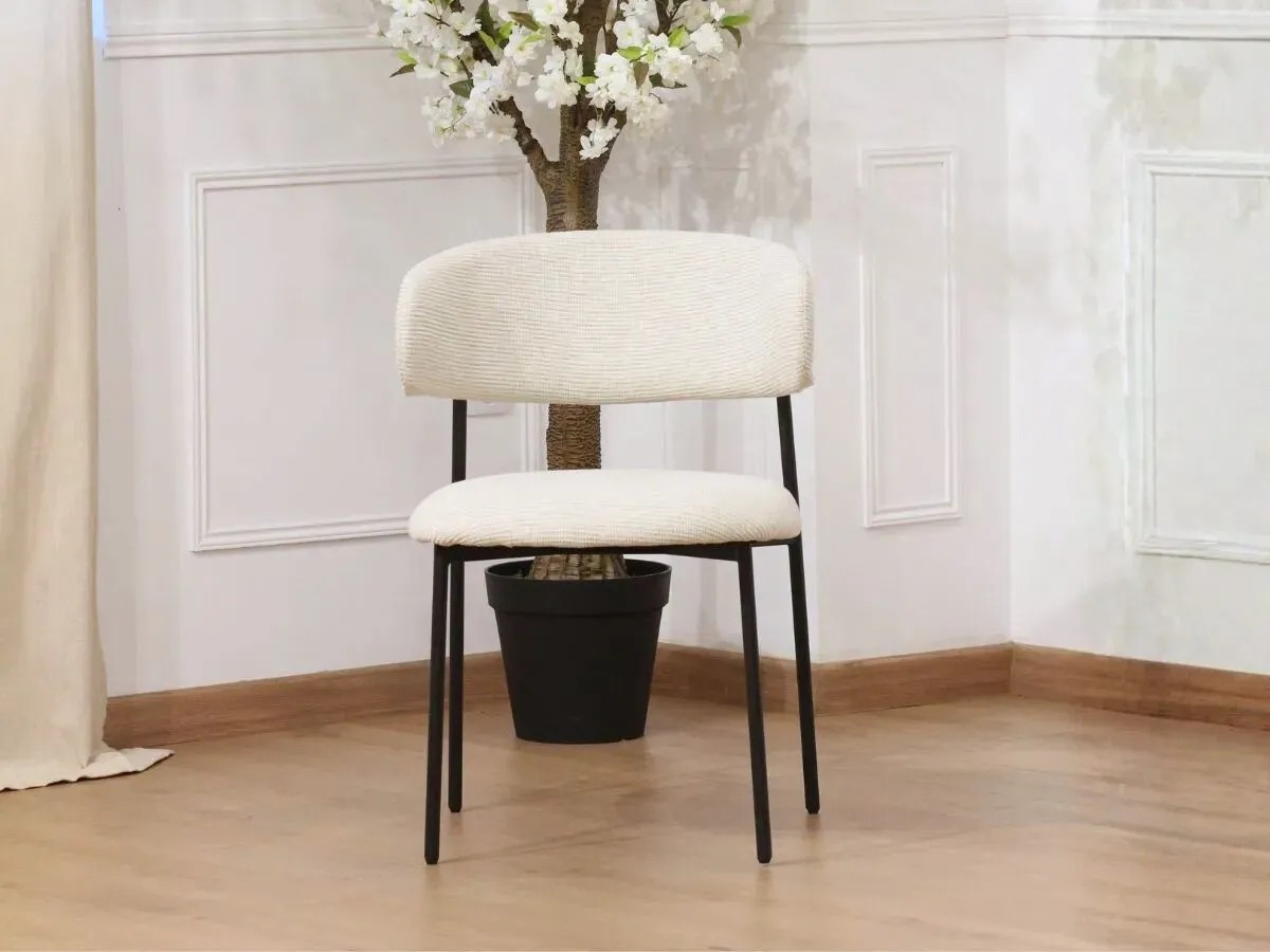 Habillée d’un tissu bouclé côtelé, elle séduit par sa texture douce et son aspect chaleureux, idéal pour créer une ambiance cosy et raffinée. Grâce à ses lignes harmonieuses et son assise généreuse, la chaise KELLA est aussi agréable à regarder qu’à utiliser au quotidien.