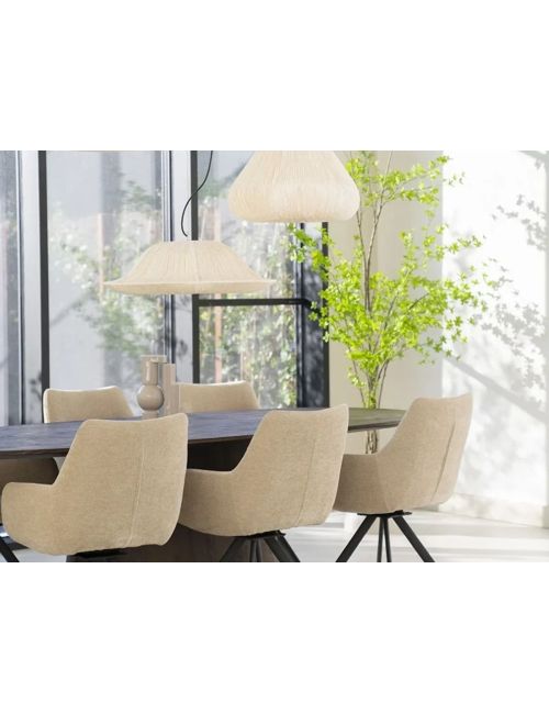 Le revêtement en tissu offre un confort optimal, tandis que la structure en métal assure une excellente stabilité et une durabilité dans le temps. La chaise BLISS s’intègre harmonieusement à tout type de décoration, qu’elle soit moderne, industrielle ou plus classique.