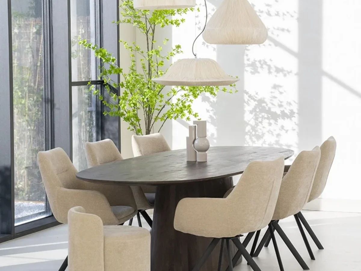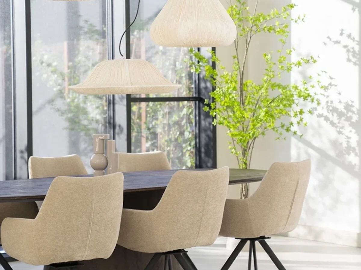 - Élégance contemporaine : Mélange harmonieux de tissu et de métal.