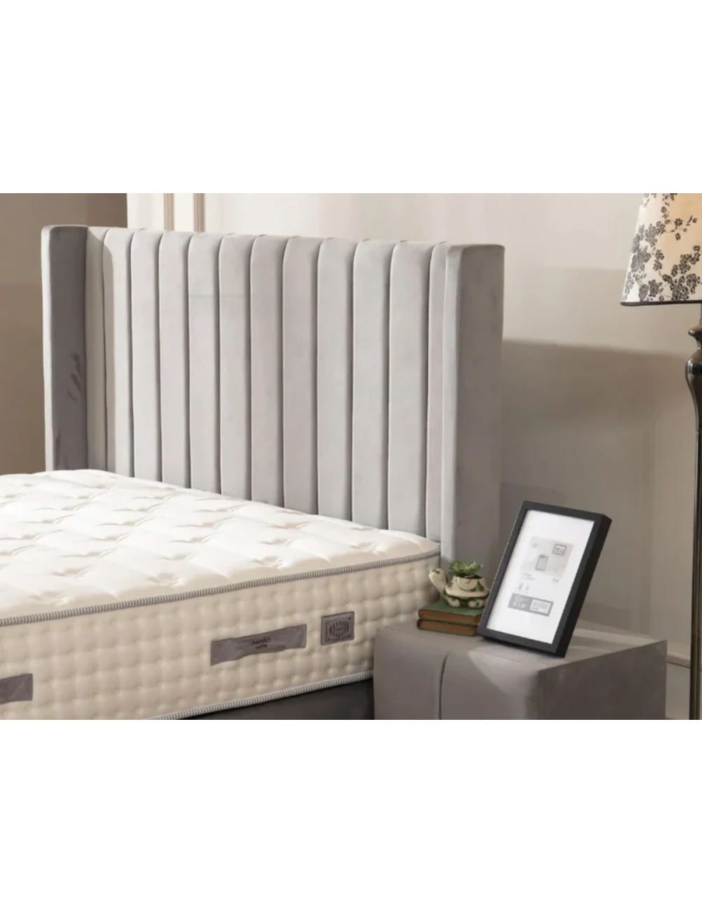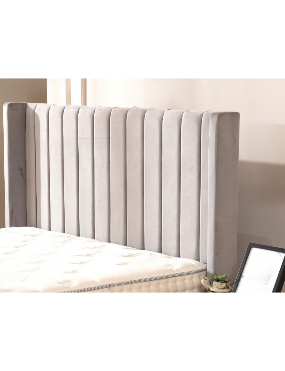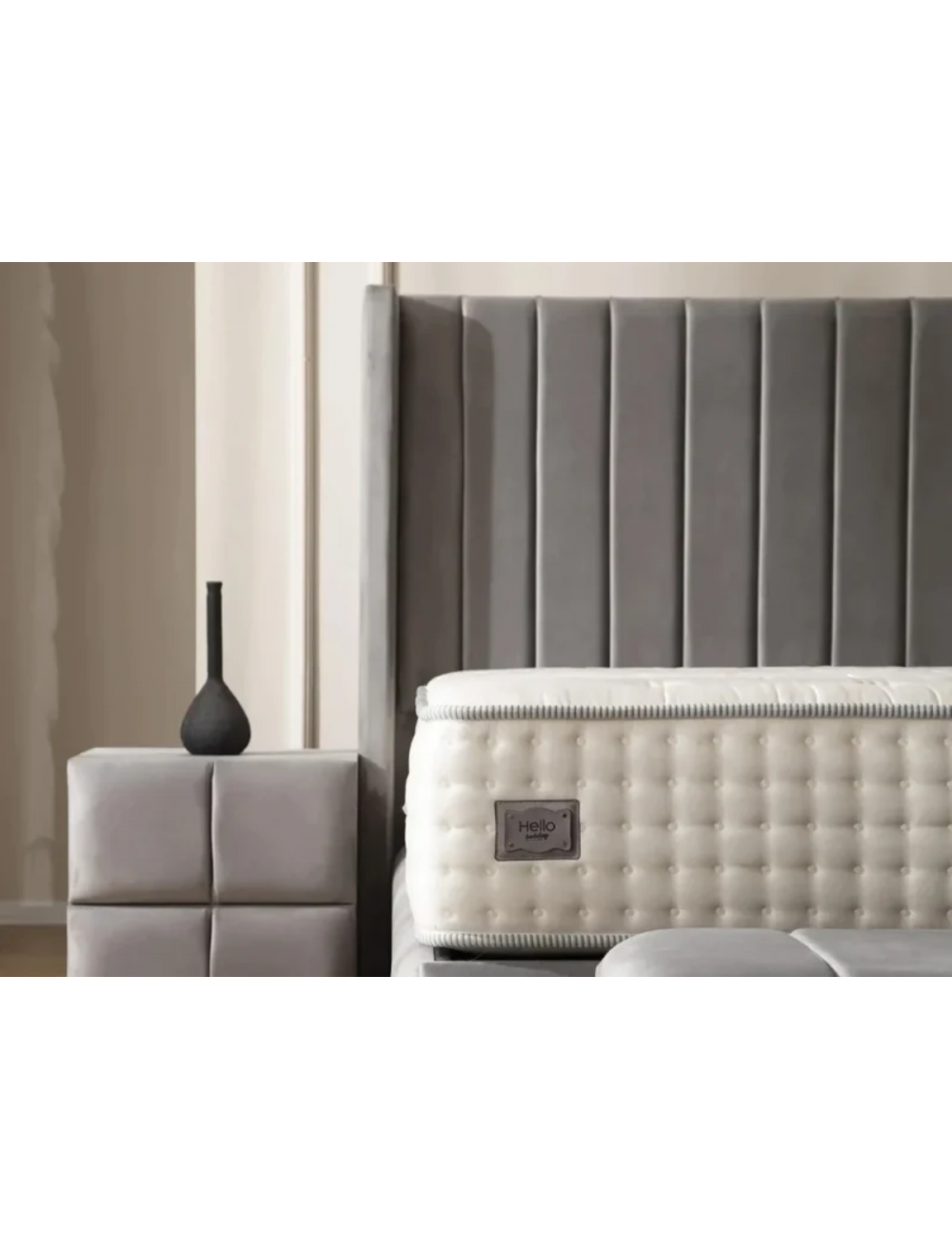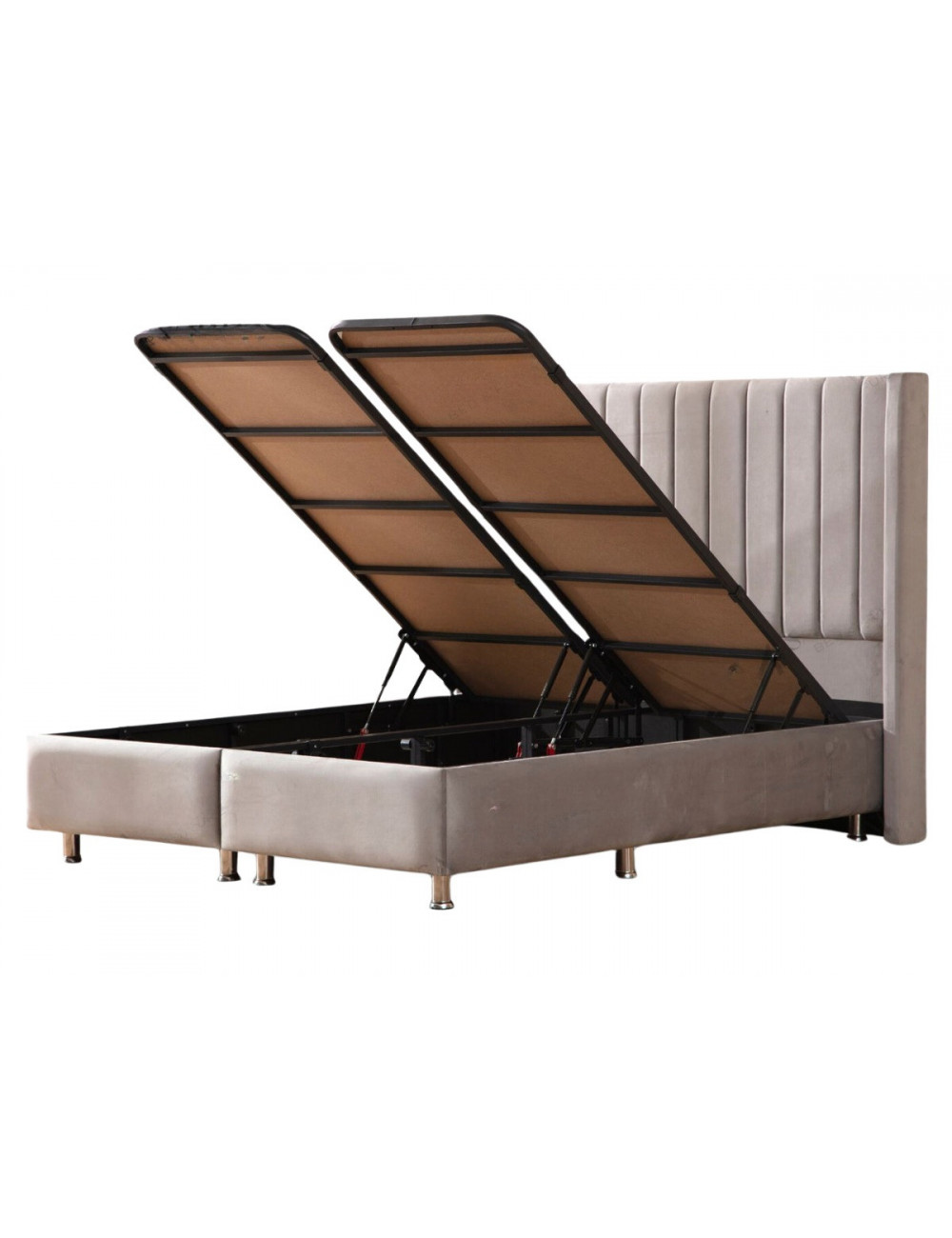 Avec son contour précis, le Lit coffre TOKYO , en velours beige et gris, allie à la perfection élégance classique et confort ultime.