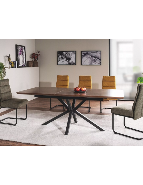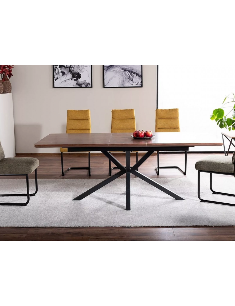 Son plateau en MDF avec placage naturel effet bois noyer offre un rendu authentique tout en garantissant une grande résistance. Grâce à son système extensible, cette table s’adapte facilement à vos besoins, offrant un espace modulable pour des repas conviviaux.
