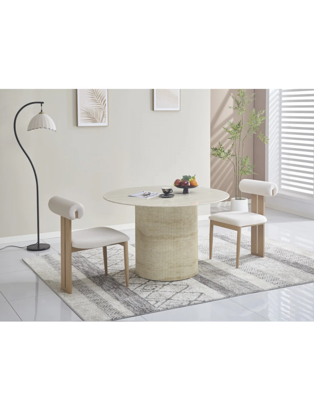 La Table ronde BAIETA est le choix parfait pour ceux qui recherchent une touche de convivialité et d’élégance dans leur salle à manger. Fabriquée en bois de qualité avec un plateau en céramique brillant, elle allie beauté naturelle et durabilité. Son design rond crée une atmosphère chaleureuse et accueillante, idéale pour partager des repas en famille ou entre amis.